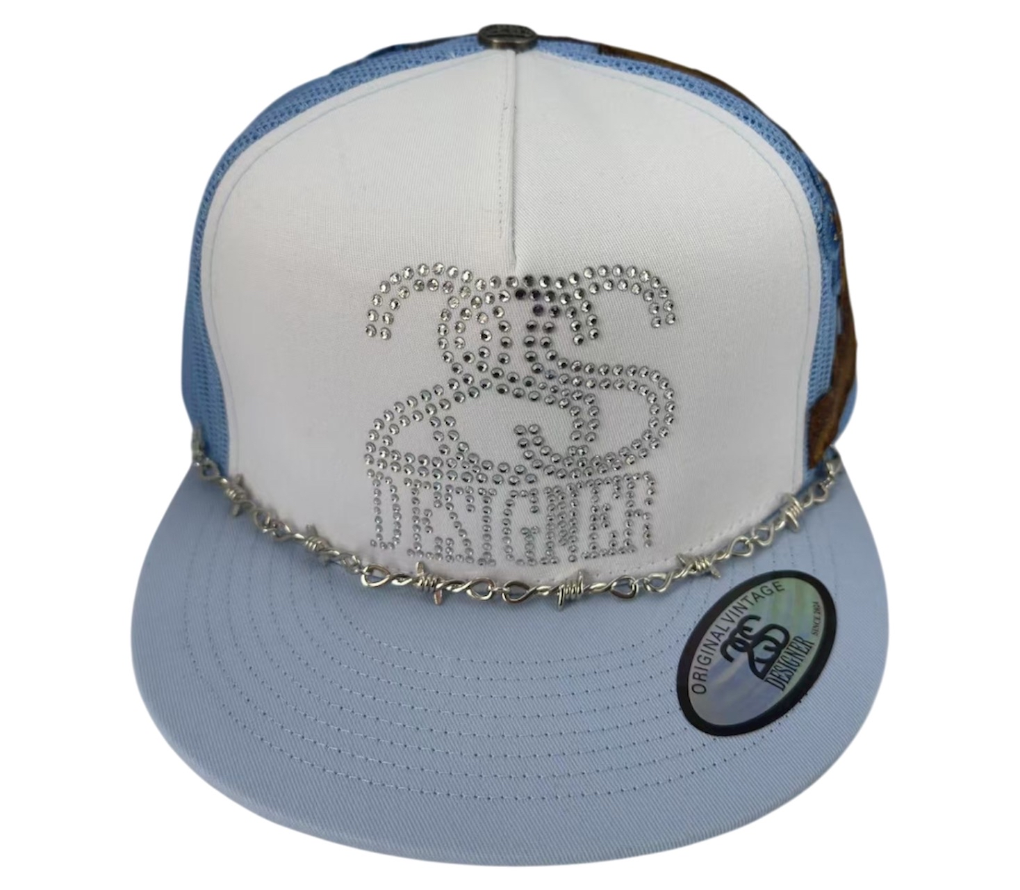 2SS DESIGNER “Ice Link” Rhinestone Trucker Hat – BLUE/WHITE Limited Edition